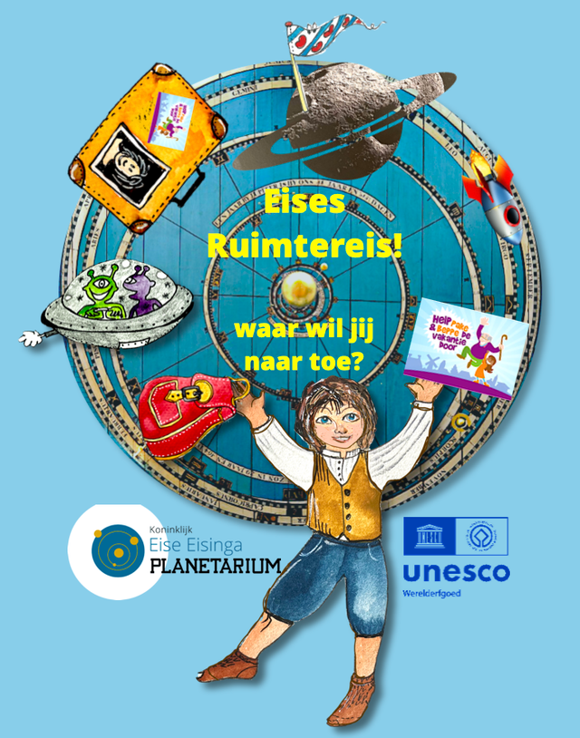Ontdek het Planetarium en ontwerp onderweg jouw planeet: hoe kom je daar, wat zie je onderweg en wat neem je mee? Ontdek ons museum met een vrolijk doeblad vol reisplezier! Bestemming bereikt? Dan ligt voor jou een wel heel interessante verrassing voor je klaar, goede reis!