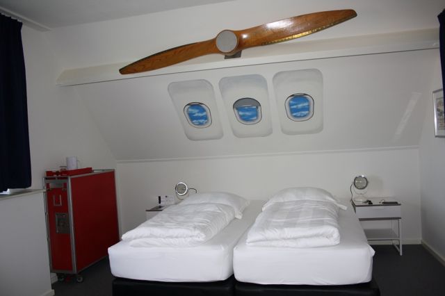 Wie wäre es mit einer Übernachtung in der Business Class von KLM? Das wunderschöne „Flugzeugzimmer“ macht es möglich. Ein Zimmer mit allem Komfort, eigenem Bad und Blick auf den Yachthafen. Sie werden den bequemen Sitzen nicht widerstehen können!