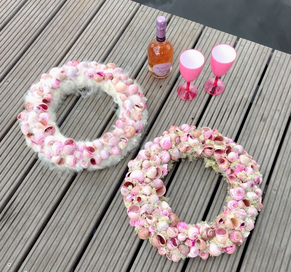 Je maakt met wol, IJslands mos en prachtige grote schelpen een mooie krans. De basis van de krans is mooie schone wol/mos wat zorgt voor een tijdloze en pure uitstraling. Je kunt kiezen uit hippe roze schelpen of naturel welke in ieder interieur pas.