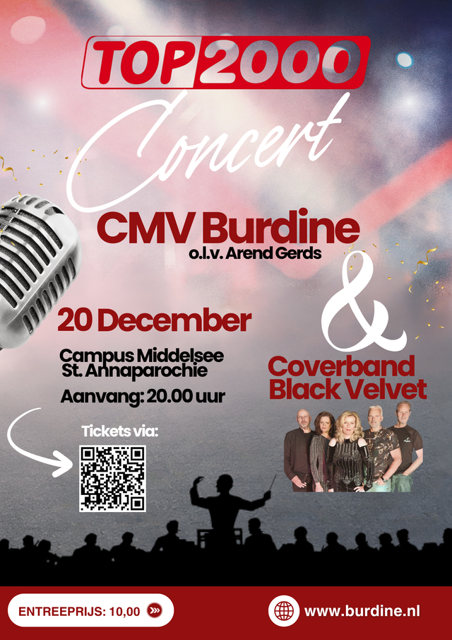Wat hebben Coldplay, Queen, Boudewijn de Groot en The Beatles met elkaar gemeen? Hun muziek maakt deel uit van de iconische Top2000-lijst, die jaarlijks miljoenen luisteraars in vervoering brengt. Op zaterdag 20 december komt deze lijst tot leven tijdens een bijzonder concert in Campus Middelsee, georganiseerd door CMV Burdine in samenwerking met coverband Black Velvet.