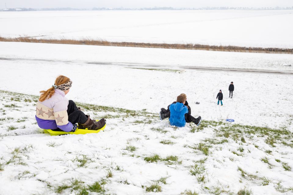 De dijk langs de Waddenkust is één grote natuurlijke speeltuin. Kinderen vinden het geweldig om van de dijk af te rollen: in de zomer vrolijk rollebolle in het gras, en in de winter op een slee over de sneeuw.